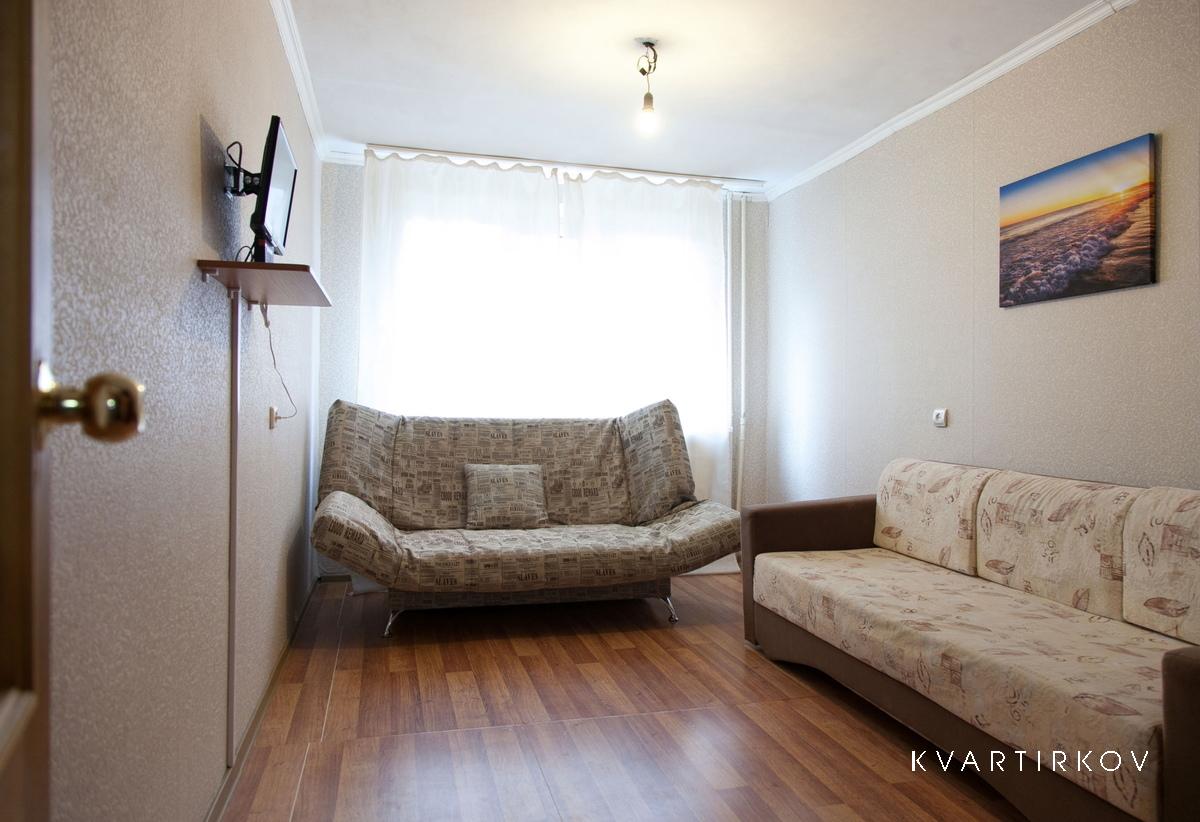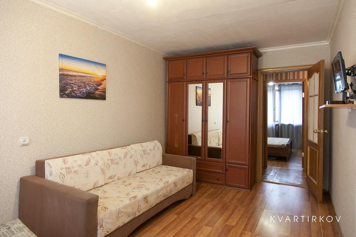 В квартире можно разместиться компания до 6 человек (2+2+2). В комнатах находятся: большая двуспальная кровать и дивана.