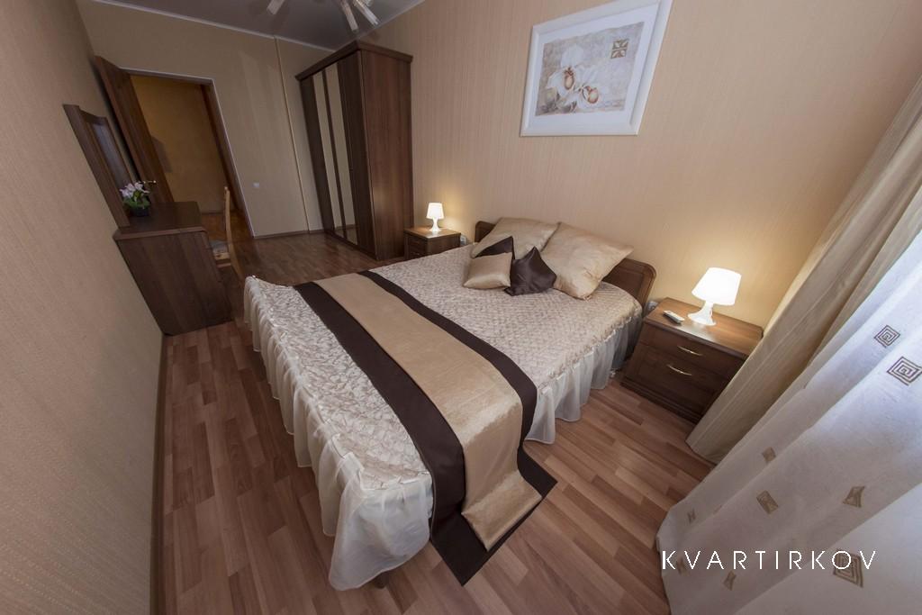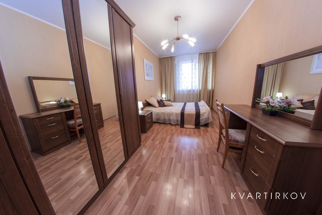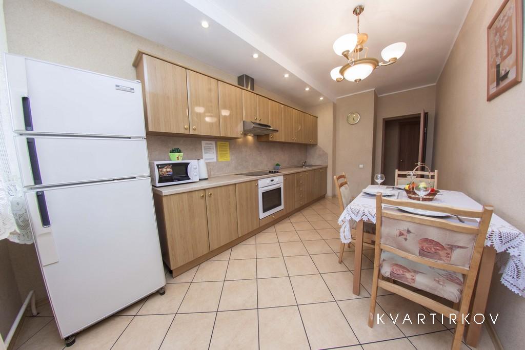 3)В квартире есть - ЖК-телевизор, микроволновая печь, стиральная машинка, чайник, утюг, гладильная доска, заправленная двуспальная кровать, посуда для приготовления пищи, всегда чистое постельное белье и полотенца.