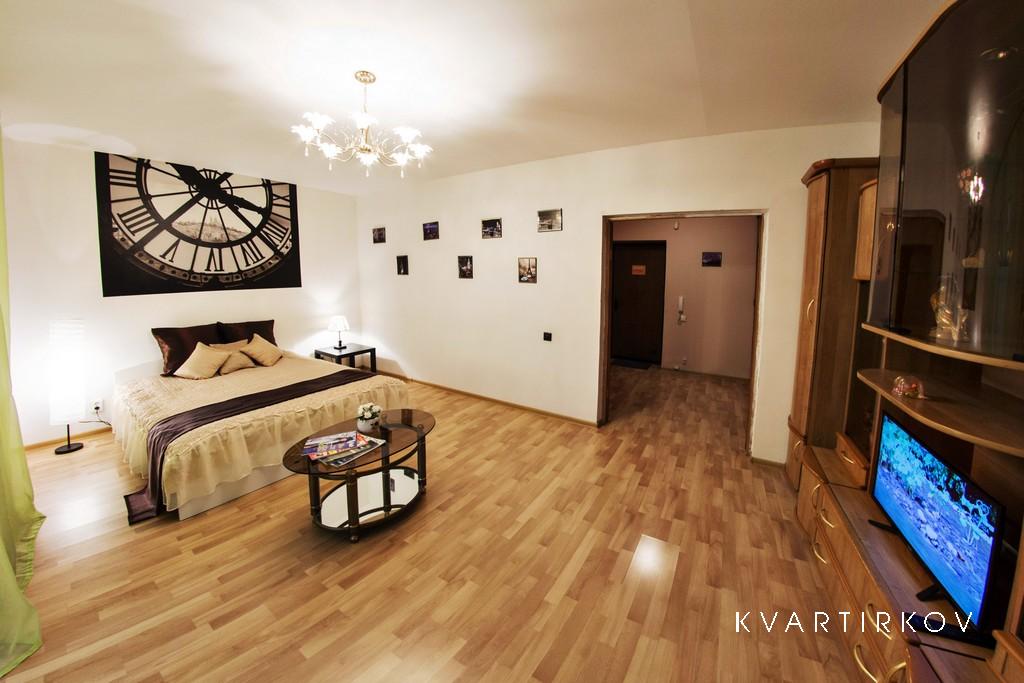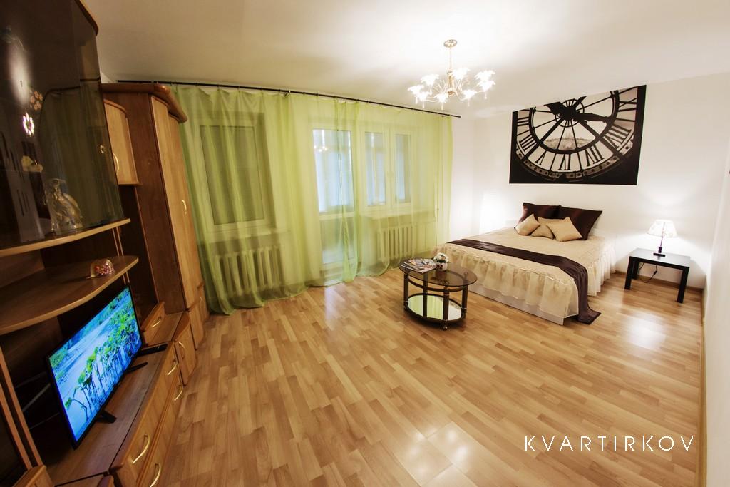 3)В квартире есть - ЖК-телевизор, микроволновая печь, стиральная машинка, чайник, утюг, гладильная доска, заправленная двуспальная кровать, диван, посуда для приготовления пищи, всегда чистое постельное белье и полотенца.