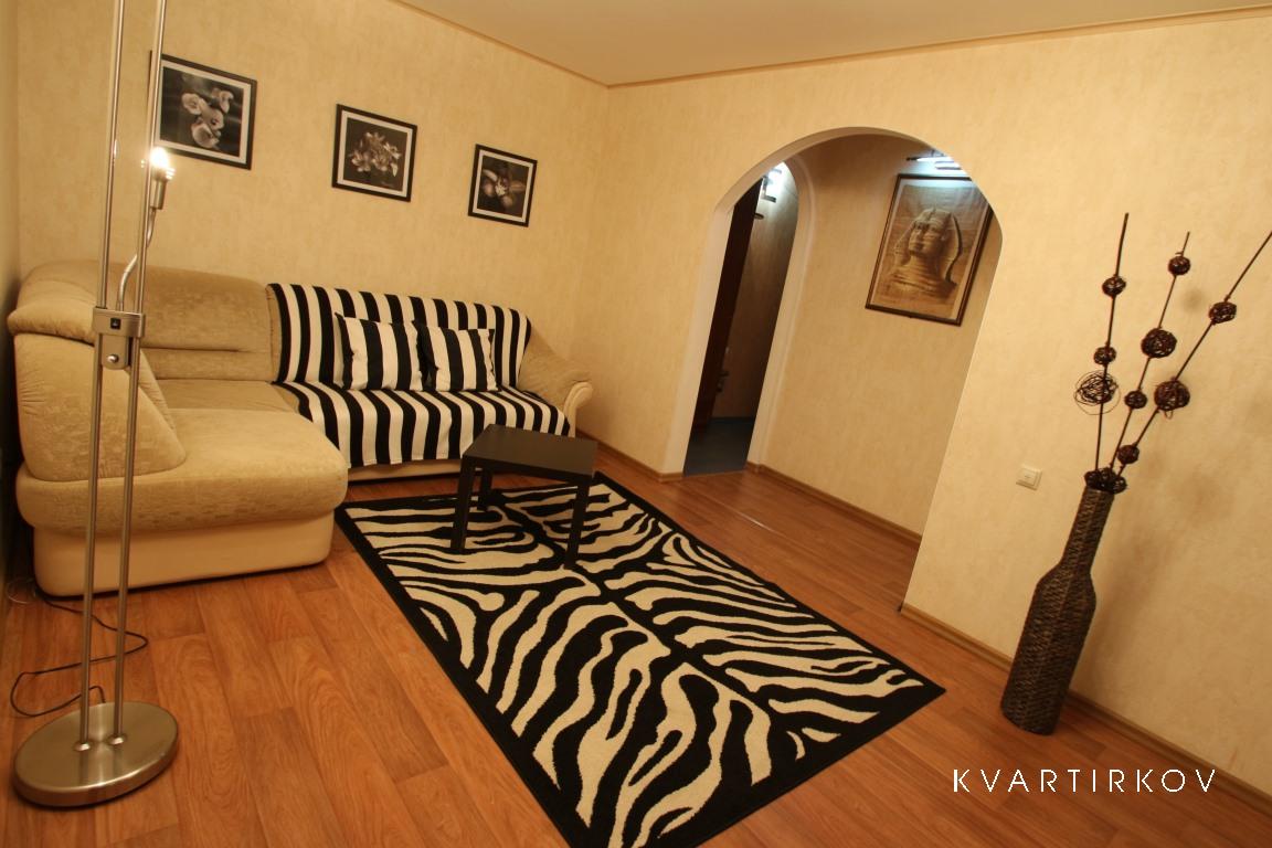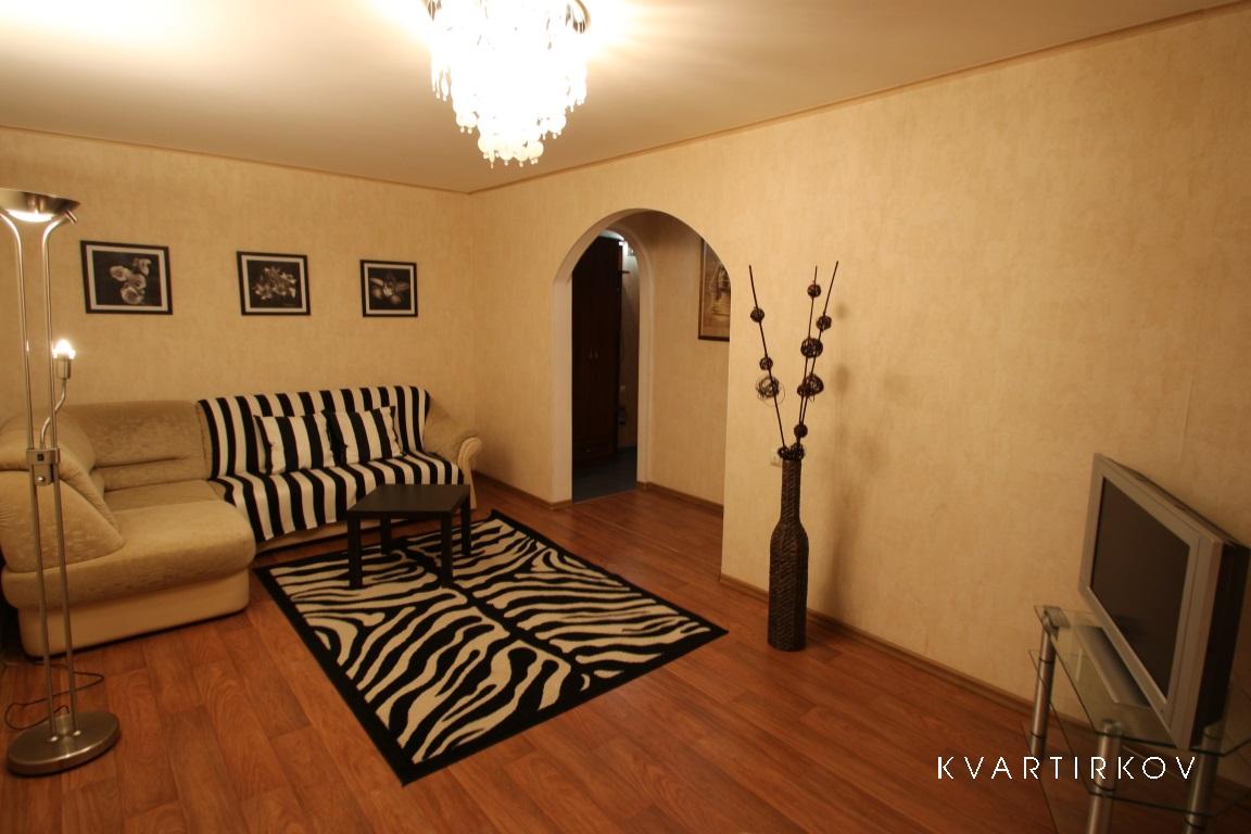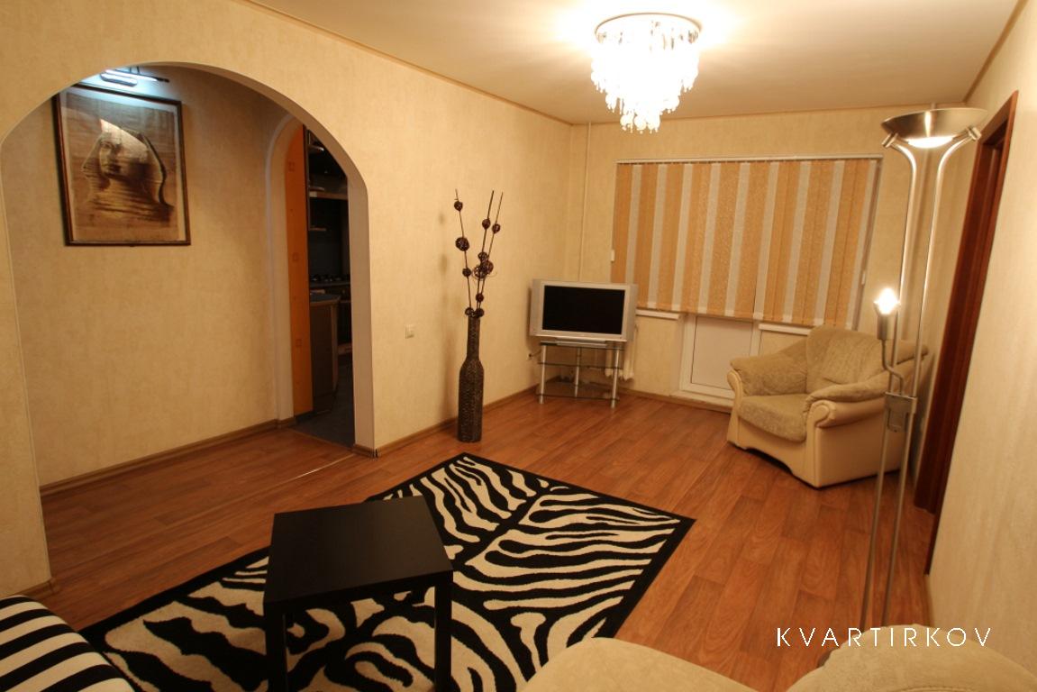 Квартира находится в красивом месте, у фонтана. Одно из лучших для прогулки мест в городе, рядом зеленая аллея, парк развлечений, цирк, кино комплекс. В квартире очень уютная кухня, с тв, и мультифункциональной духовкой. Современный ремонт контрастно отделяет спальню от зала. Квартира обставлена по домашнему.