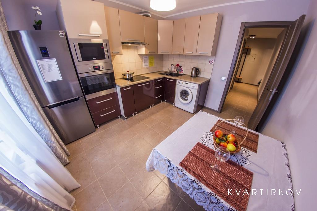 3)В квартире есть - ЖК-телевизор, кондиционер, микроволновая печь, стиральная машинка, чайник, утюг, гладильная доска, фен, заправленная двуспальная кровать, диван , посуда для приготовления пищи, всегда чистое постельное белье и полотенца.