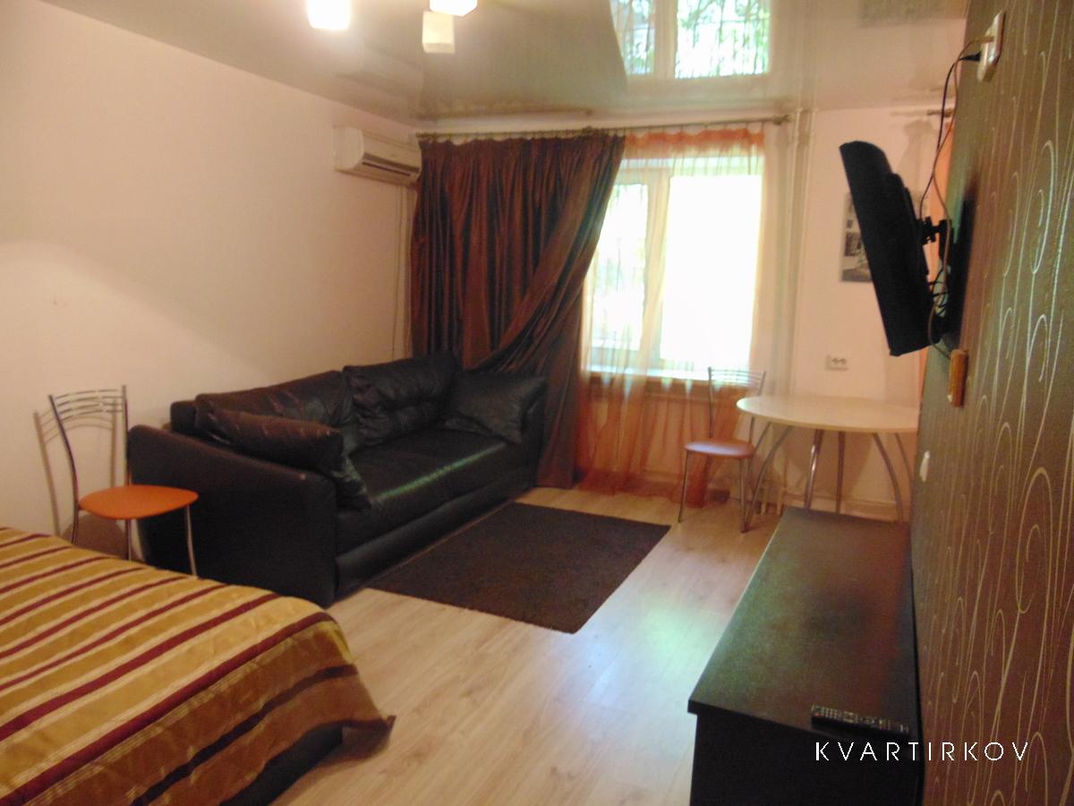 Квартира-студия с евроотделкой и большой угловой ванной. Современная мебель, бытовая техника, комплекты постельного белья, посуды. WI-FI, кабельное телевидение.