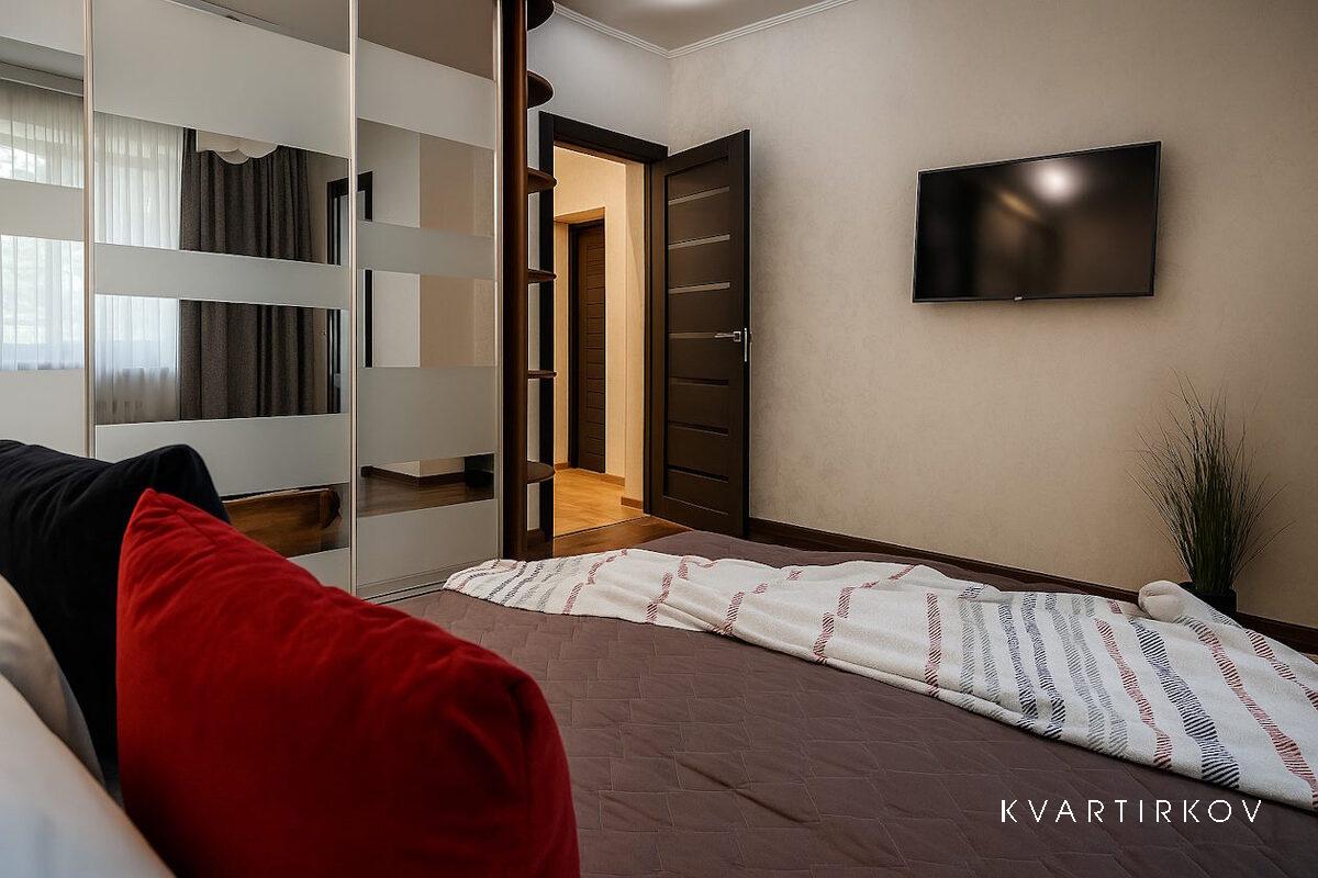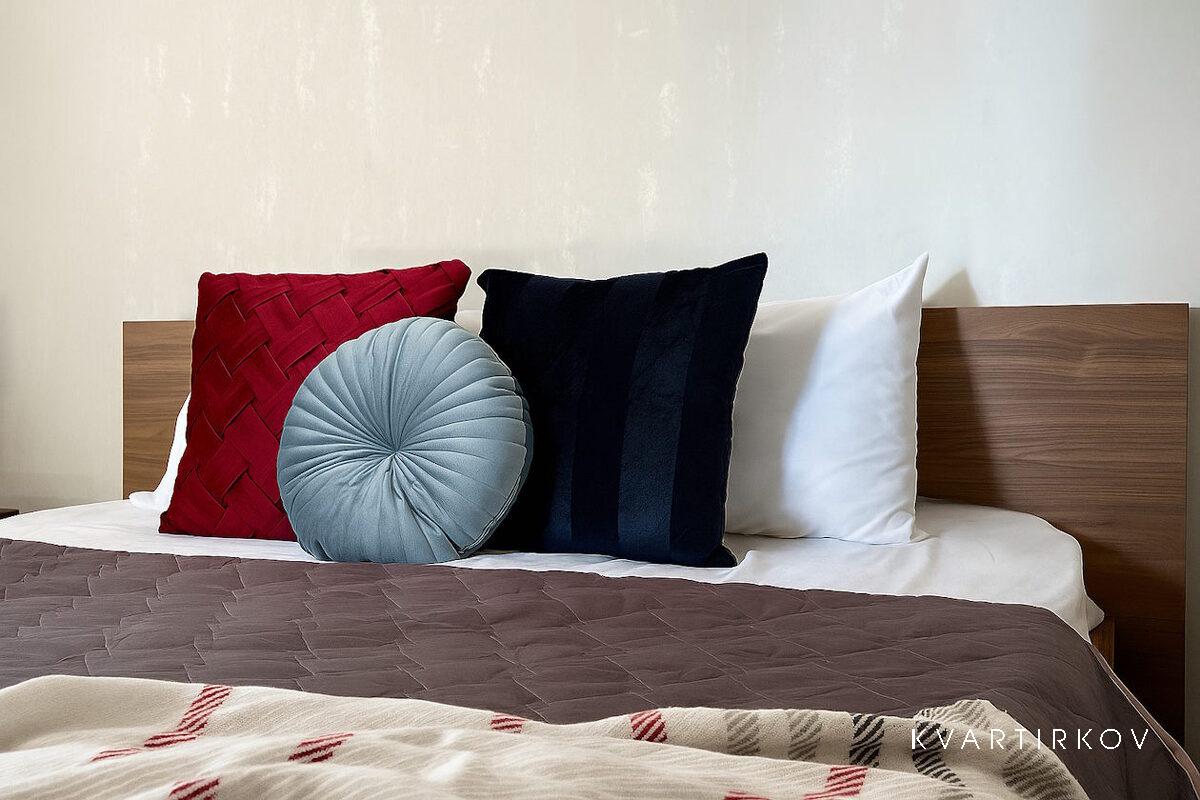 В квартире есть всё необходимое для проживания до 4 человек: двуспальная кровать, раскладной диван, Wi-Fi, TV, стиральная машина, фен. Кухонная зона: плита, чайник, холодильник, микроволновая печь. Косметика: шампунь, гель, мыло. Уборка и смена постельного белья проводится каждые 4 дня.