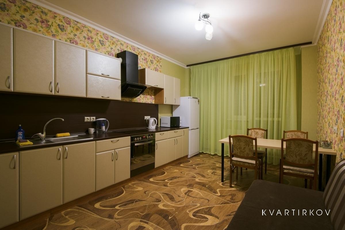 - It is possible to pre-book on the date you are interested in. _____________________________________________ - Elite apartments in the elite European housing complex on the banks of the Kuban River. The territory of the complex is fenced and guarded (even a Bentley Continental will not fall a feather). - You will have your own promenade, tennis court, fountain, a huge walking area, a playground, a convenience store, a cafe right next to the entrance. Parking problems are excluded. - The window offers a wonderful view of the river, city and courtyard. - In walking distance is the Carnival shopping center, where you can buy absolutely everything you need or try something like that in the restaurants that are also there. - You will reach the airport in 30 minutes, to the railway station in 20 minutes. We have a very developed transport infrastructure ._____________________________________________ The apartment can easily accommodate up to 4 people. There is absolutely everything for a comfortable and carefree stay, namely: - a double bed with high-quality snow-white bedding. - comfortable and very large double sofa. - upon request we can provide a cot. - capacious wardrobe. - washing machine, refrigerator, hob, oven. - LCD TV with 300 cable channels. - microwave. - ironing board, iron, hair dryer, clothes dryer. - towels (both bath and kitchen) - slippers, individual toiletries. - coffee, tea, sugar in verse. - A complete set of dishes for 4 persons for cooking and eating. - water filter. - very fast Wi Fi. - split system. _____________________________________________ Smoking strictly on the balcony. For check-in, an identification document is required.