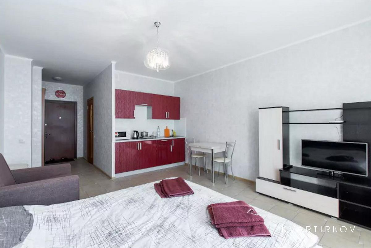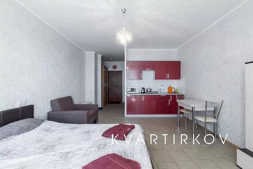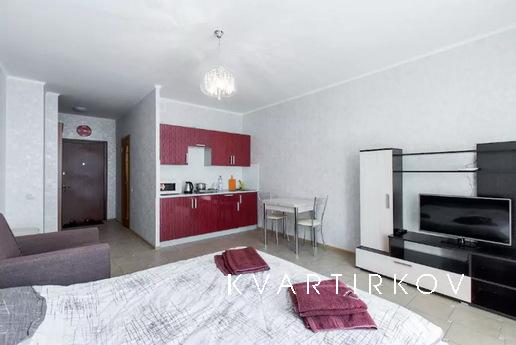Studio Apartment Youth are Pavshinskoy floodplain. The nearest metro station Myakinino 25-30 minutes walk or by subway Tushinskaya / Mitino 10-15 minutes transport. The new house, renovation. There is a double bed and a sofa bed, wardrobe, TV. Small kitchen: microwave, electric stove, kettle, crockery.