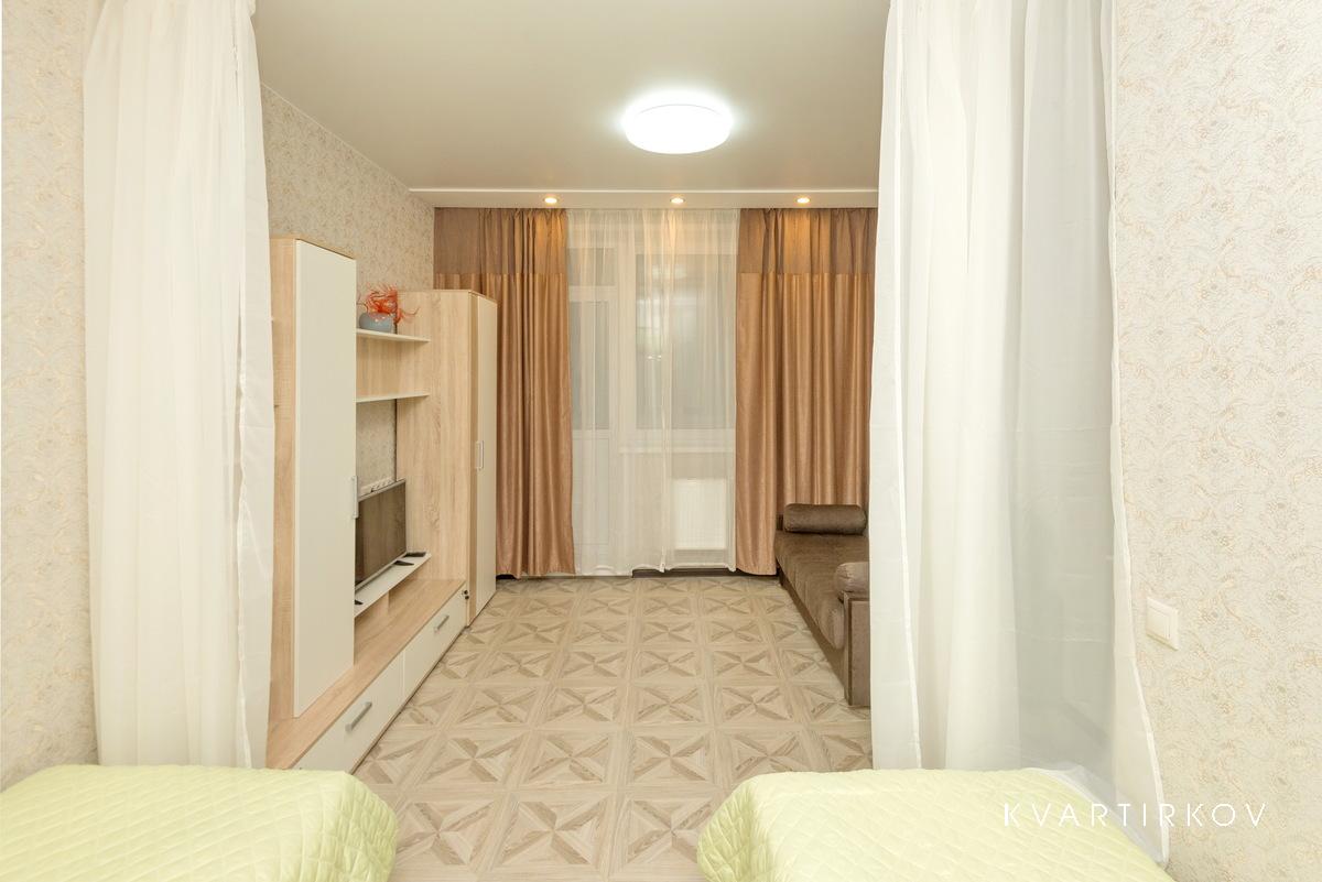 A new life is born here! Wonderful, safe, spacious apartment with a zoned bedroom, with all amenities. In the central area of the city. Cleanliness, comfort and coziness! Quality furniture. In the presence of all the necessary appliances and utensils. Clean linens, towels and slippers. Prestigious house, developed infrastructure.