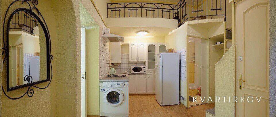 Затишна квартира в 2-х рівнях в самому центрі Львова. Квартира знаходиться навпроти Оперного театра.Удобное розташування, швидкий доступ до найбільш відомим історичним місцям Львова. Зручна транспортна розв'язка маршрутних таксі. Квартира обладнана всім необхідним для комфортного проживання. У квартирі є праска, фен, чиста постільна білизна і нові рушники.