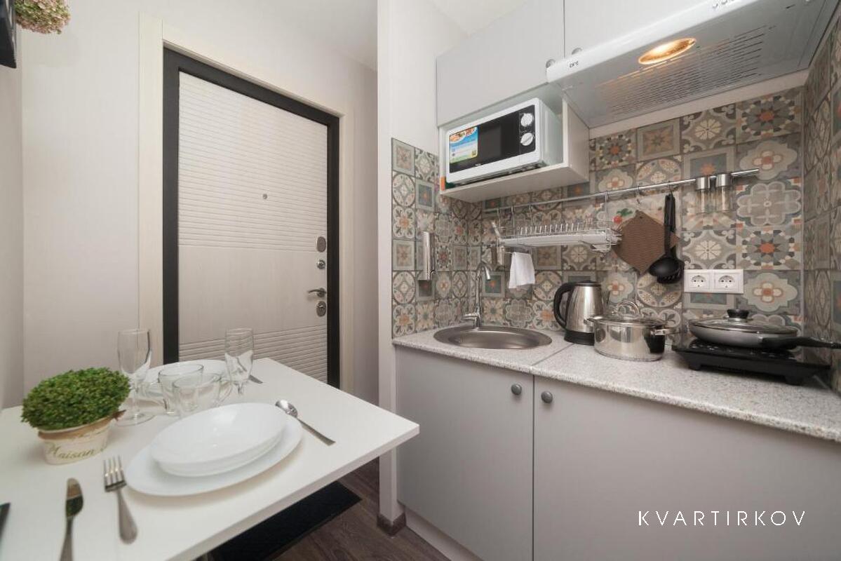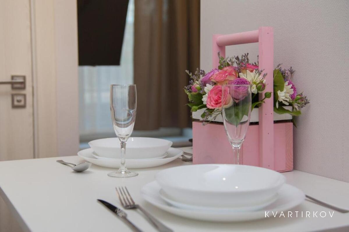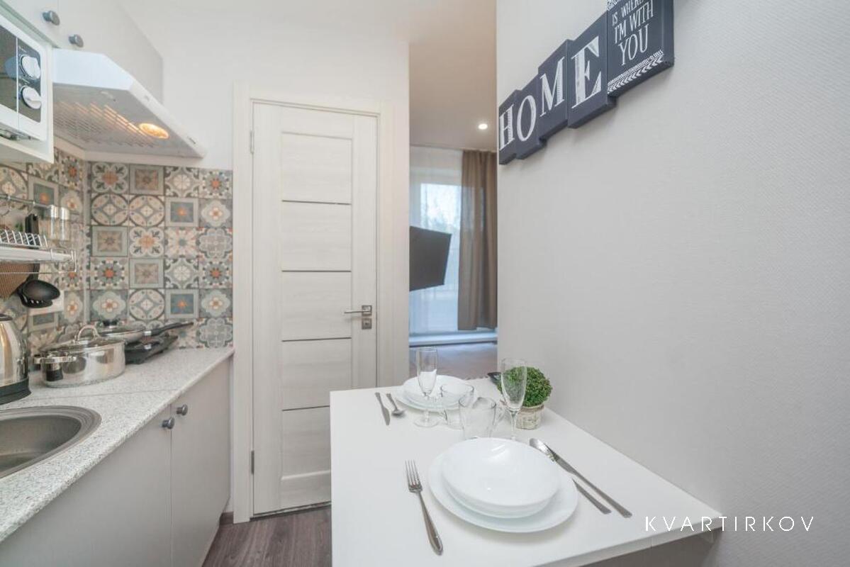 The apartment is located in the business-class residential complex Novaya Zvezda. The residential complex has its own closed territory and a quiet courtyard for relaxation. EQUIPMENT: - TV - kitchen area - refrigerator - electric kettle - microwave oven - electric stove - hair dryer CHECK-IN RULES: Remote check-in from 14:00 to 21:00, check-out until 12:00; late check-in from 21:00 to 23:00 is additionally paid to the manager 500 rubles (by transfer to the card) We do not check in after 23:00.