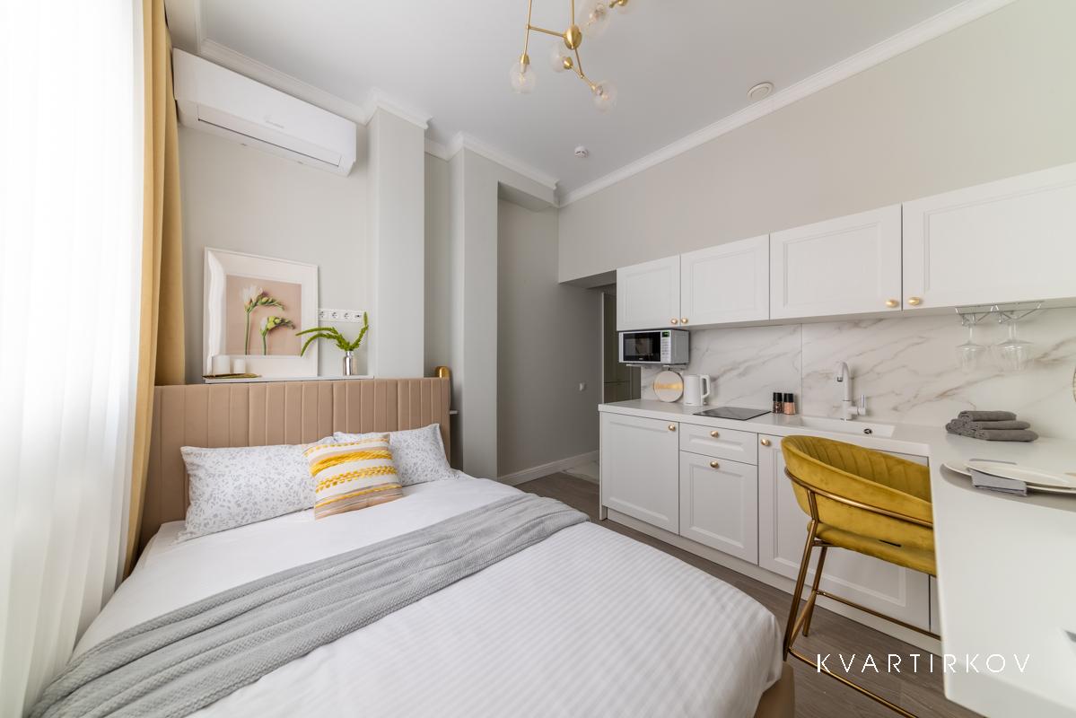 Cozy studio for rent, located near the metro station "Baumanskaya". EQUIPMENT: - kitchen - TV - refrigerator - electric kettle - microwave - electric stove - hair dryer - washing machine CHECK-IN RULES: Remote check-in from 14:00 to 21:00, check-out before 12:00; late check-in from 21:00 to 23:00 is additionally paid to the manager 500 rubles (by transfer to the card) After 23:00 we do not check-in.