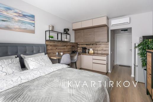 A cozy full-fledged studio with good sound insulation, orthopedic bed and a dedicated parking space near the house is for rent. Residential complex "Otkrytyi Park" is located in the north-east of Moscow in the green area of Metrogorodok. EQUIPMENT: - TV - kitchen - refrigerator - electric kettle - microwave oven - hair dryer - stove - toaster - coffee maker - washing machine - air conditioning - orthopedic mattress - orthopedic pillows TRANSPORTATION: m.