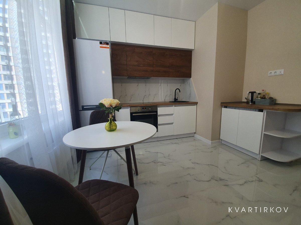 Здам нову однокімнатну квартиру в Аркадії в ЖК "44 Перлина ''. Квартира видова на високому поверсі. Велика спальня теплих тонів і панорамний вид - ось її перевага. На модернової кухні прісутстуюет великий розкладний диван і обідній стіл, так само холодильник, електричний чайник, духовка необхідний посуд.