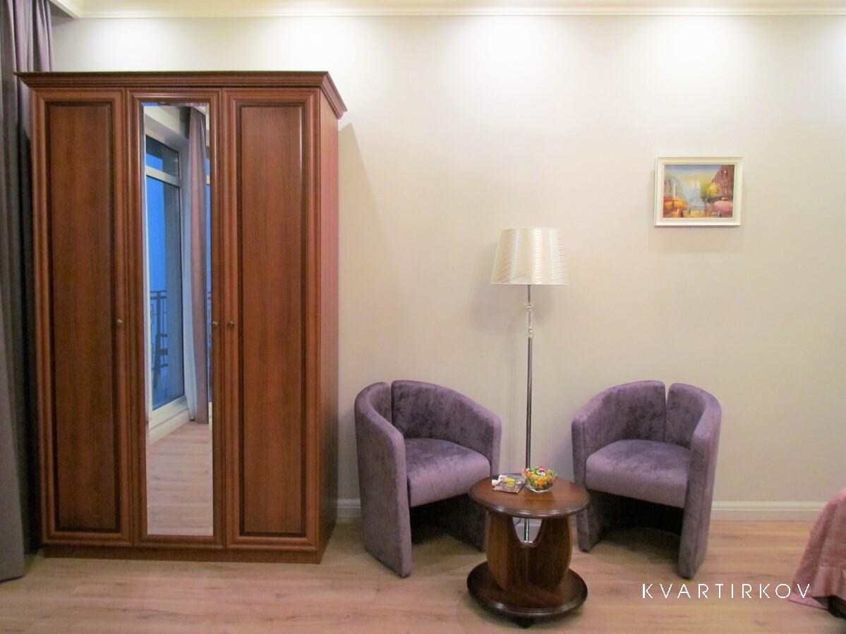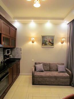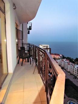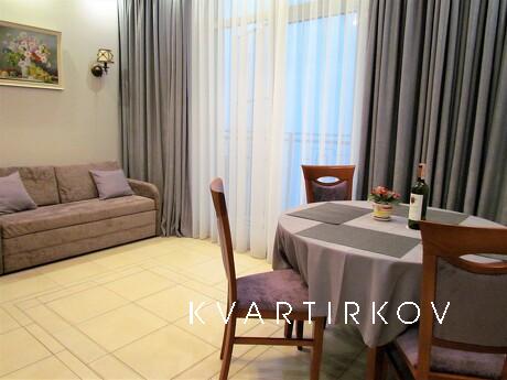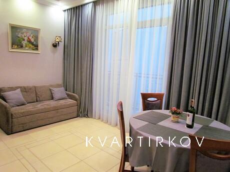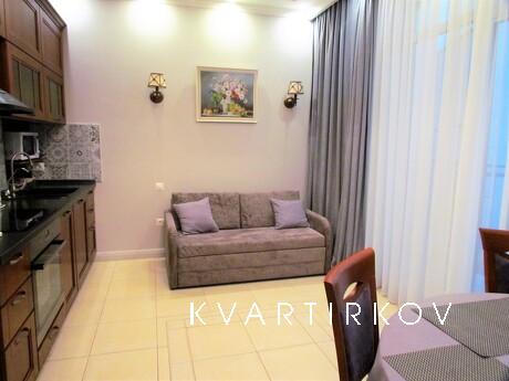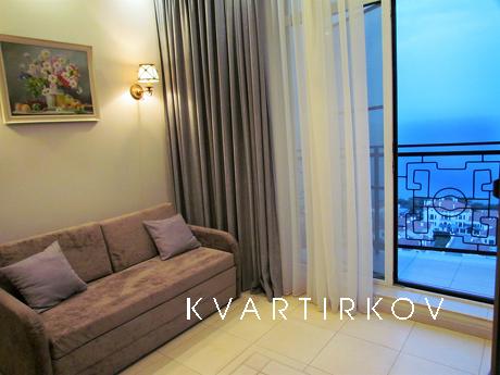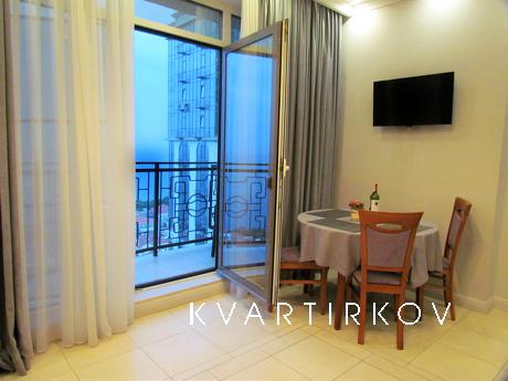 The apartment is located in the most fertile area of the French boulevard, within walking distance to the sea 200 meters. Main and Side Walk of Arcadia, Popular Beaches and Clubs (Ibiza, Ithaca, Bono) Beautiful park "Victory" immersed in the green with ponds. Popular Luxury Shopping Area "Victory Gardens", a new shopping center «Gagarin Plaza» SPA complex "Ark Spa" and several prestigious restaurants. Arcadia is known for the fact that on its territory there are many restaurants, discos and night clubs, open from mid-May to mid-September, as they are located, as a rule, directly on the sea shore in the open air. The cozy interior and comfortable layout, allow comfortably accommodate 2 + 2 guests, as it is quite spacious (double bed and sofa bed) The apartment is new just renovated, is located on the 20th floor, allowing you to watch the beautiful view of the sea and the sunrise from your own outdoor balcony .Ponoramnye windows throughout the apartment will provide you with comfort and the limitless horizon. Private parking allows you to not worry about your iron druga.Nadezhnost and safety it provided. According to configuration: -Uyutnaya kitchen studio with a balcony (zone - relax sofa, dining area, TV, air conditioning, a modern ergonomic kitchen is equipped with all appliances (microwave, kettle, electric stove, oven, refrigerator, dishwasher, purified -pitevaya water) double bed with orthopedic mattress, wardrobe, TV, dresser, desk, cupboard under the suitcase, bedside tables, chairs) bed linen, hair dryer, iron, dryer for clothes, ironing board, towels and all necessary utensils and so on. d. -sanuzel with shower and hygienic shower (equipped with modern bath textiles), washing machine, hairdryer, slippers and a lot of pleasant things. Surrender is not less than 2 days! Pets are not welcome (Zaezd- 12:00 Check-10: 00 Pre-booking-confident pledge rest for one day cost of living:... The price - 1200 UAH per day from May to 1500grn (with 1-10maya-1800grn) from June- . 1800 UAH by July-August-2000 UAH 2000 UAH September-1500 USD per day;... in other months price - 1200 UAH per day Wi-Fi high speed internet access Ideal for family, beach and active... Recreation!!