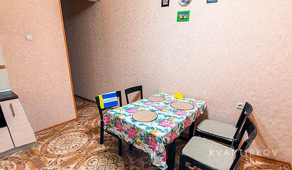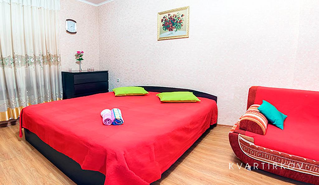Rent 1-bedroom. apartment. Cable TV. Internet Wi-Fi. The room has a king size bed and sofa. Bed linen and towels. There are the necessary furniture, appliances, microwave oven, dishes, refrigerator. Near supermarket, cafes, car parking, bus stop. Call and book your desired apartment.