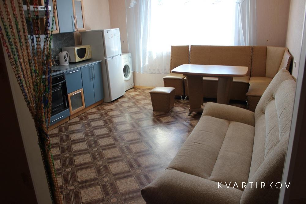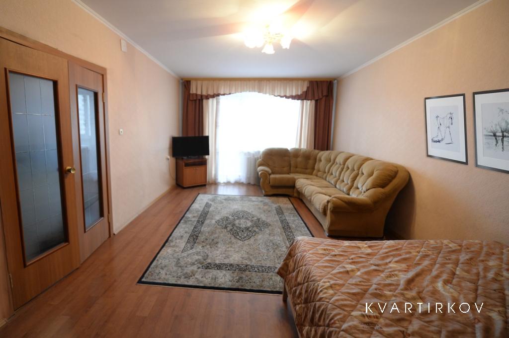 The apartment is one bedroom but it looks like a huge two bedroom. Household appliances: microwave oven, electric range, oven, washing machine, dishes, iron, ironing board. Also, unlimited internet access, Wi-Fi, digital TV. Bed linen, towels, personal hygiene products are available, hotel standards. Our guests can prepare their own meals in the fully equipped kitchen. Cleaning of the apartment is made after the guest departure or upon request. You will call in a clean apartment with clean fresh linen and towels. Includes slippers, and other hotel suites. Chance of cashless payments to organizations. We provide accounting, standard documents. Possible transfer, working 24 hours. Cost: 1600 rubles per day per day, 1000. - 3 hours. A flexible system of discounts, prepaid, on weekends or holidays, as in long-term lease, the number of guests, price of an apartment varies. Call - to discuss, you will be happy! PS: We are renting an apartment only to stay, birthdays, anniversaries, corporate parties and other entertainment events - smoking, fine rub !!!