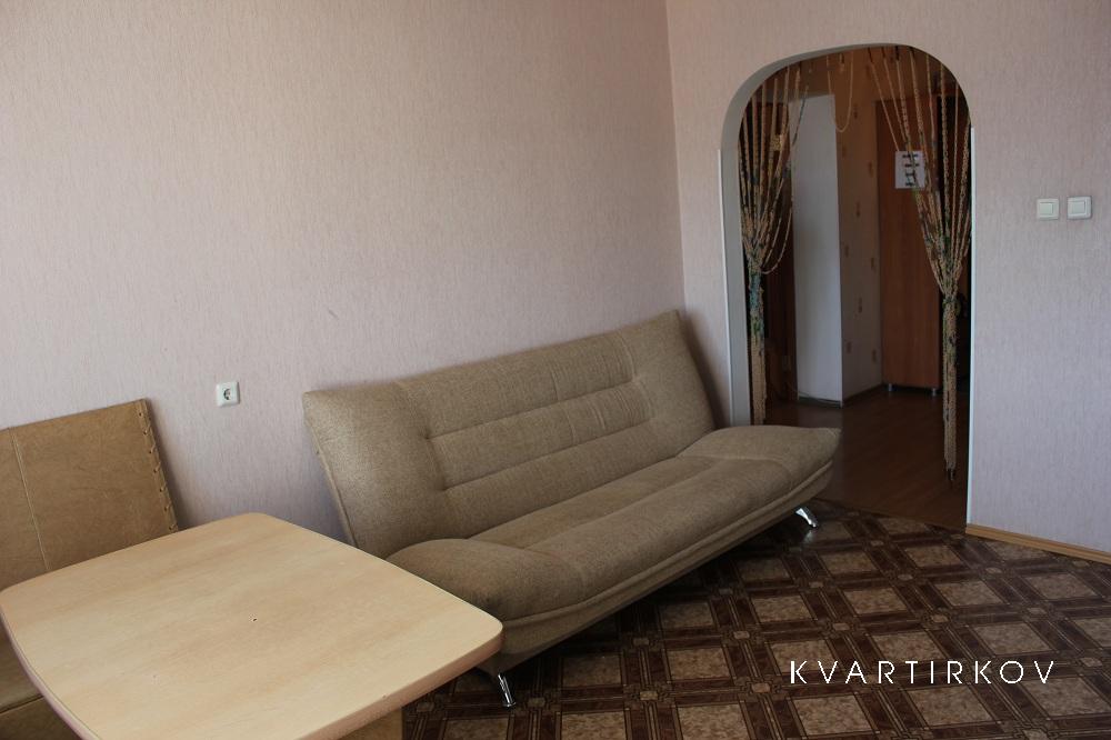 Rent a cozy, one-bedroom apartment. Cost: 1600 rubles per day per day, 250 rubles / hour (min.2 hours) 48m2. New, modern house next to the street. Malygina SEC "Gallery Voyage". All infrastructure in close proximity. The apartment is equipped with everything needed for a comfortable stay. Double bed and sofa bed were located in the hall, the kitchen also two sleeper sofa that makes it impossible to accommodate 1 to 6 persons.