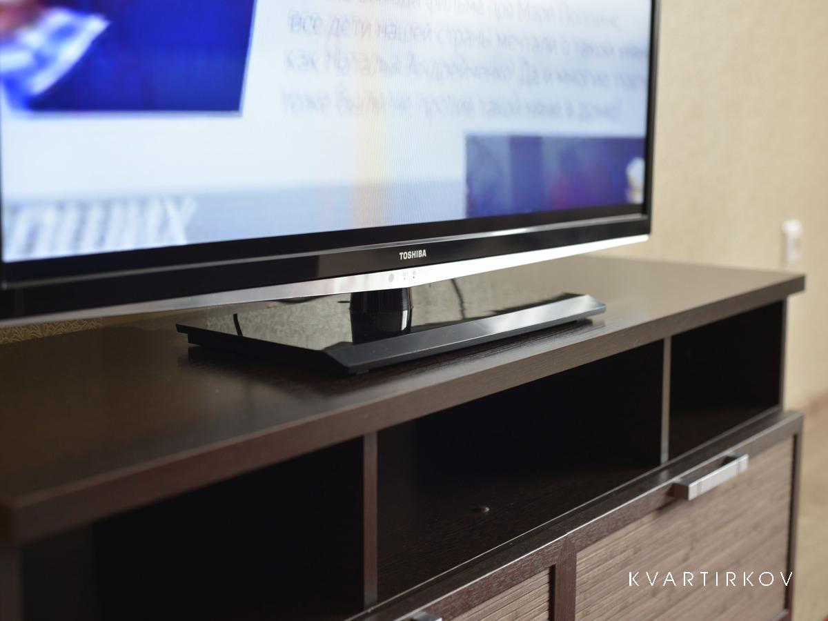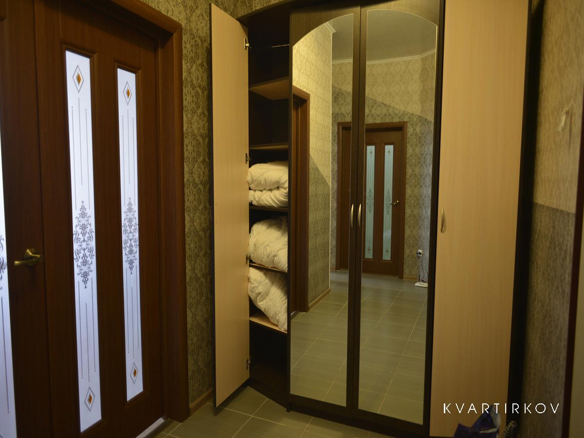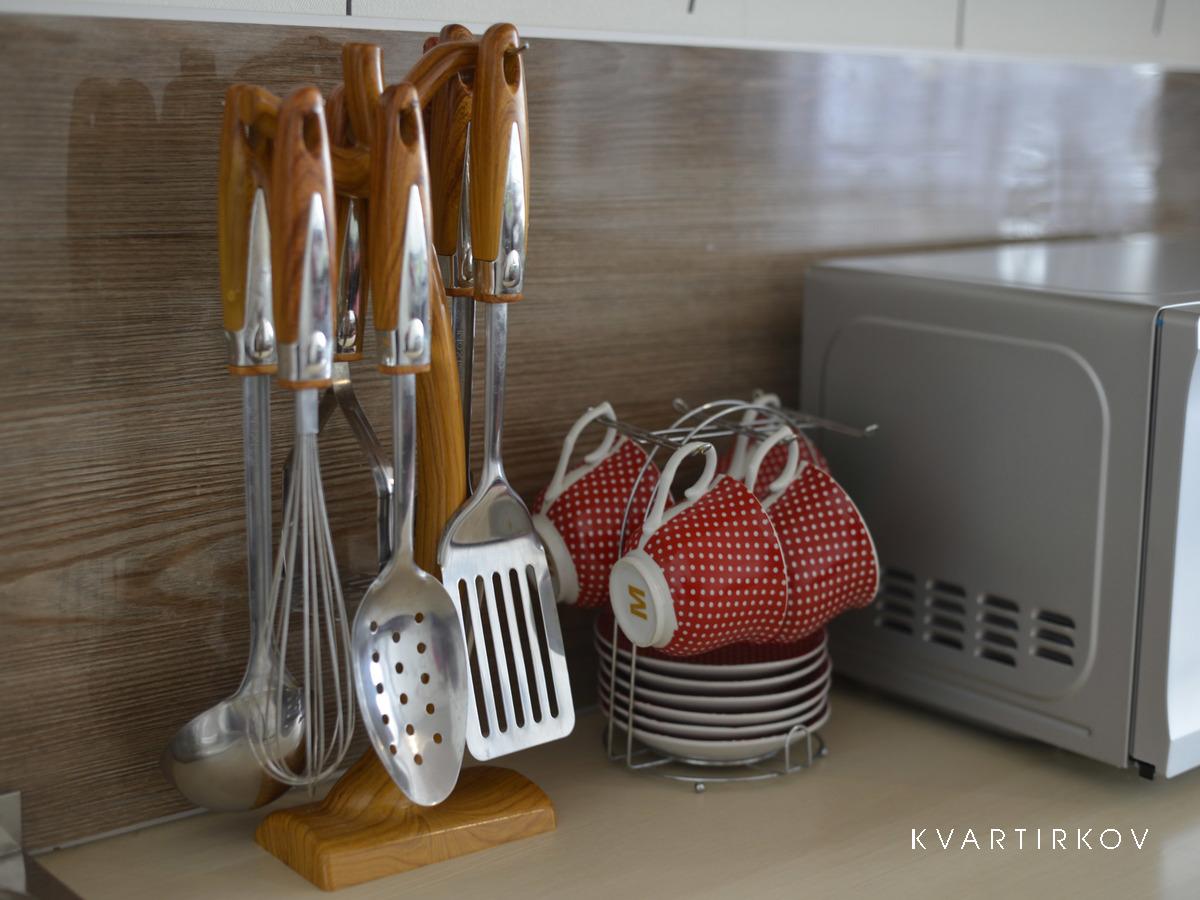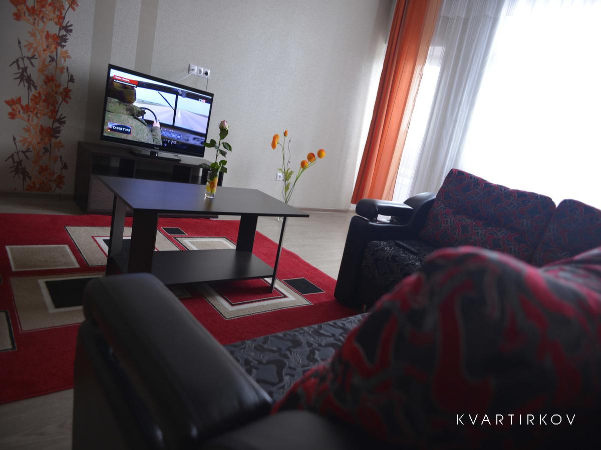 The apartment is made new quality euro renovation. In the room there is a large folding double sofa, a 44-inch flat-screen TV, a coffee table, and there is also an exit to the balcony. In the kitchen there is a kitchen set, table, chairs, modern appliances: electric stove, electric kettle, microwave oven. For cooking, there is all the necessary utensils. From the kitchen there is access to a glazed balcony and access to a special zone for smoking. For our guests we provide free bed linen and towels, slippers, clean drinking water, tea, coffee, shower gel, shampoo, soap, toilet paper, air freshener, dishwashing detergent and dish sponge, shoe care products. Also in the whole apartment there is a high-speed free WI-FI. For business travelers we provide all accounting documents and cashier's checks.