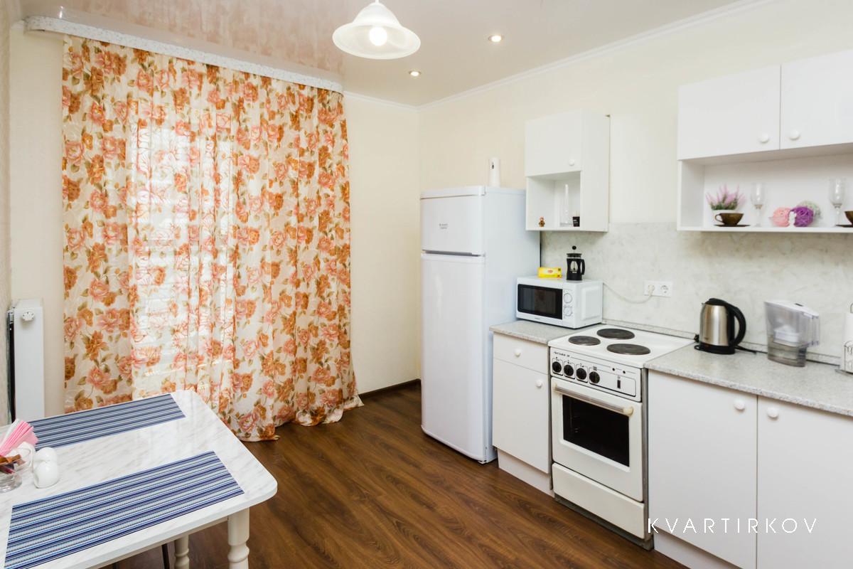 A new, bright, comfortable apartment located in the modern "Novin" quarter in the central part of Tyumen at the intersection of 50 years of October and Odessa Streets. The house has a closed guarded territory, parking lots, and video surveillance, a good playground. The apartment has everything you need for a comfortable stay, all appliances, cooking utensils, iron, ironing board, dryer, hair dryer.